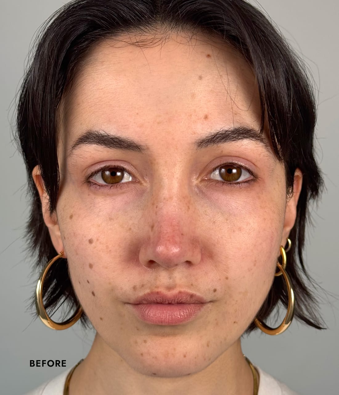 - Step 2: The glow primer. For a luminous effect, add a few drops of vegan liquid highlighter with iridescent pigments to the foundation. This creates a noticeable shimmering glow. Applying the highlighter liquid with a makeup sponge makes seamless, almost invisible blending a breeze.